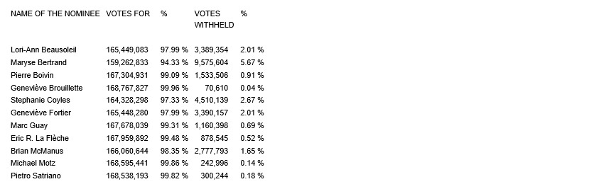Following the annual general meeting of shareholders of Metro Inc., held on Jan. 27, 2026, the company has released the voting results obtained at the annual general meeting of shareholders for the election of its directors.