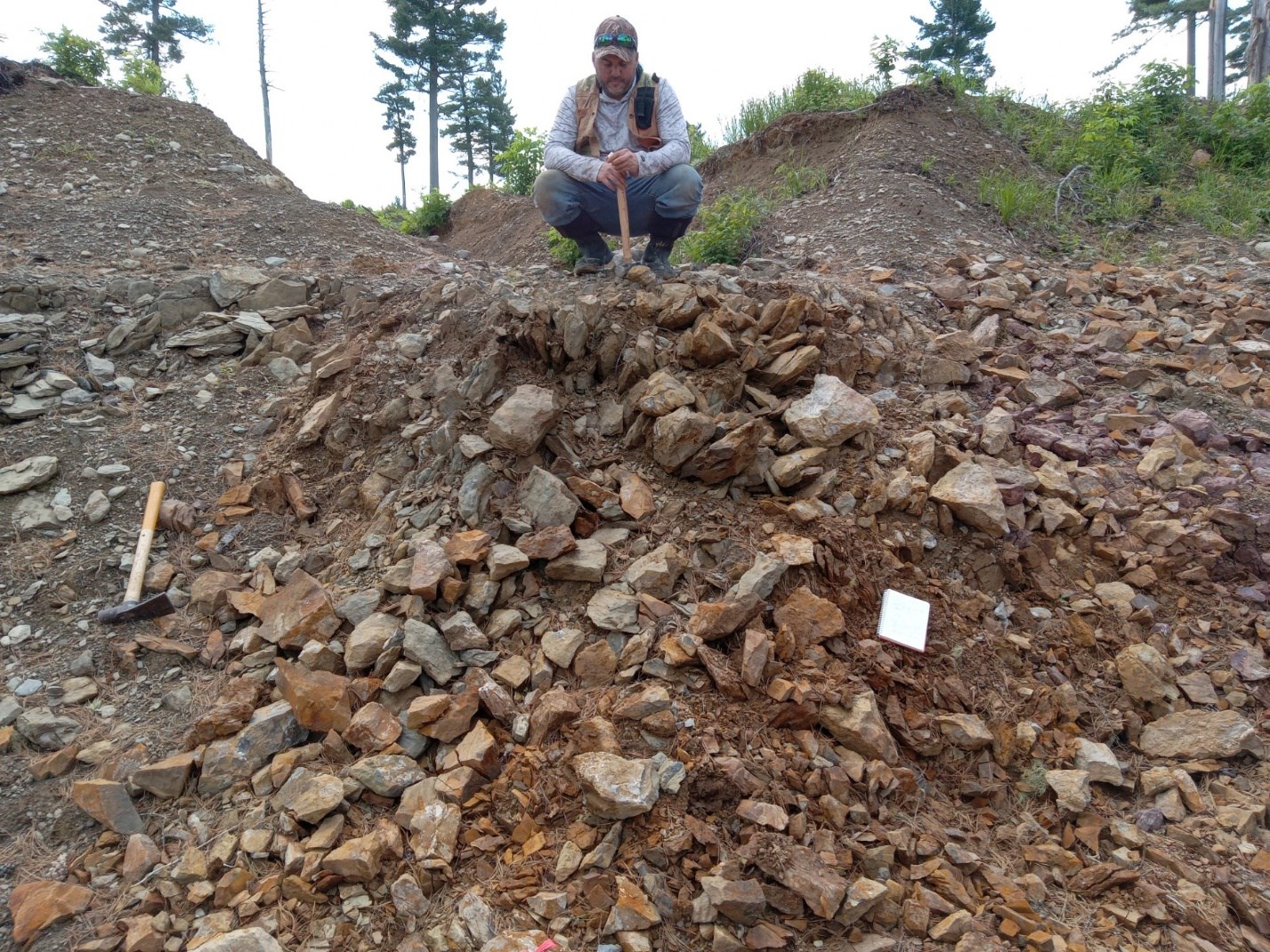 Figure 3: Discovery Trench area showing altered and mineralized gabbro with prospector Tim Lavoie.