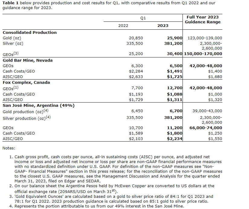 MCEWEN MINING: Q1 2023 RESULTS