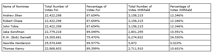 Shareholders voted to elect all seven directors nominated to the MediaValet board, to hold office until the close of the next annual general meeting of shareholders of the company, or until their successors are elected or appointed. The results of the vote are set forth in the attached table.