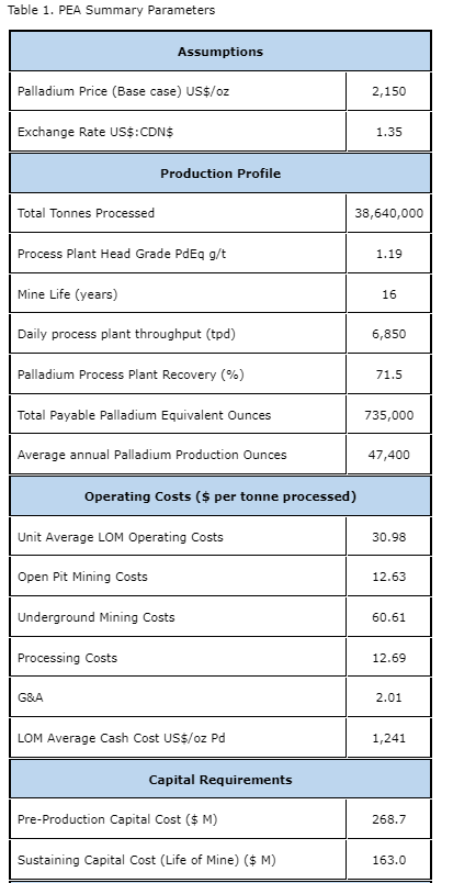 New Age Metals chairman and chief executive officer, stated: "The PEA results released today are positive with a posttax NPV (5 per cent) of $134-million, an IRR of 11 per cent, and 16 years of palladium, platinum and copper production.