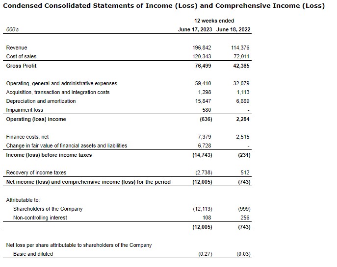Neighbourly Pharmacy Inc. has provided its financial results for the 12-week period ended June 17, 2023 (the first quarter of 2024).