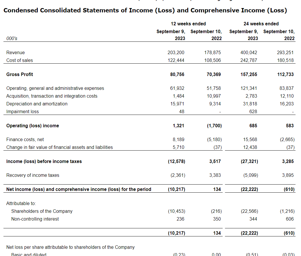 Neighbourly Pharmacy Inc. has released its financial results for the 12-week period ended Sept. 9, 2023 (the second quarter of fiscal 2024).