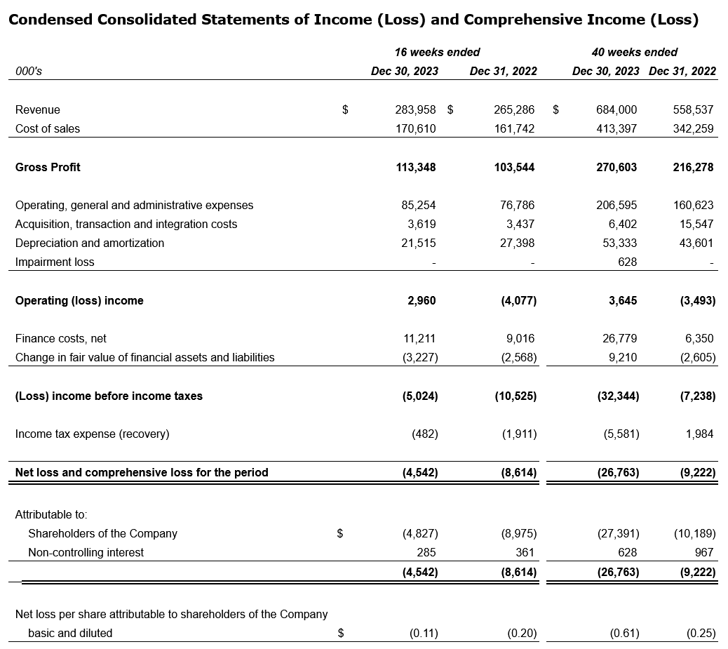 Neighbourly Pharmacy Inc. has released its financial results for the 16-week period ended Dec. 30, 2023.