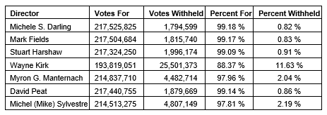 All of the following business items were approved at the AGM by the requisite majority of shareholder votes cast at the meeting: