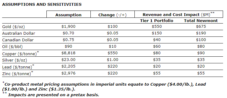 Assuming a 34 per centincremental tax rate, a $100 per ounce increase in gold price would deliver an expected $675 million improvement in revenue. Included within the sensitivity is a royalty and production tax impact of $5 per ounce for every $100 per ounce change in gold price.