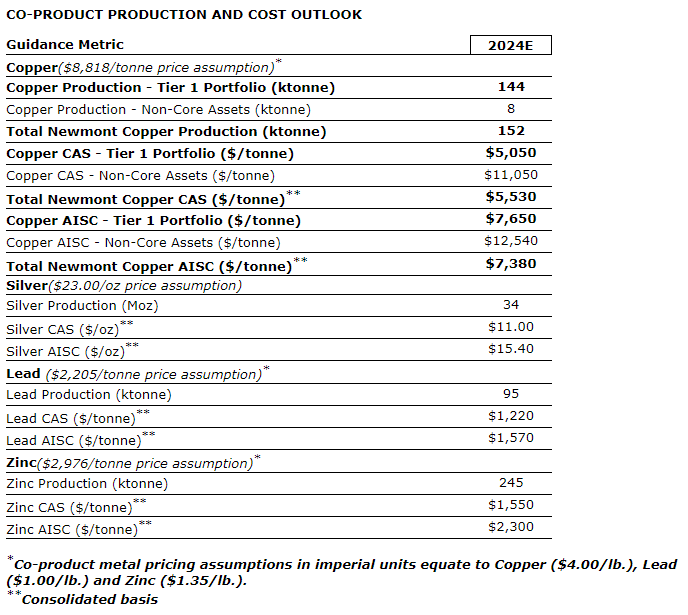 In 2024, the addition of Cadia and Red Chris from the acquisition of Newcrest is expected to increase Newmont's Tier 1 Portfolio copper production. This will be partially offset by lower copper production expected from Boddington as the site progresses laybacks in 2024. In addition, Penasquito is expected to deliver higher co-product production due to higher silver, lead and zinc content from the Chile Colorado pit.