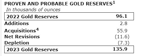 Newcrest acquisition accounted for net addition of 44 million ounces of gold reserves in 2023 (net of revisions);