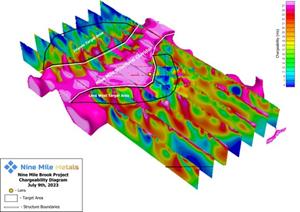 VANCOUVER, British Columbia, July 10, 2023 (GLOBE NEWSWIRE) -- NINE MILE METALS LTD. (CSE: NINE, OTCQB: VMSXF, FSE: KQ9) (the “Company” or “Nine Mile”), is pleased to announce the mobilization of Lantech Drilling Ltd. track mount rig for continuation of the Company’s stage 2 drill program at its flagship Nine Mile Brook VMS project in the world-famous Bathurst Mining Camp, New Brunswick (“BMC”). Following re-processing and technical analysis from Phase 1, refined targeting has identified a new structure crosscutting the project area west of the Lens. Defined by a chargeability high, the Nine Mile Structural Corridor contains individual targets along its boundaries that have never been drill tested.