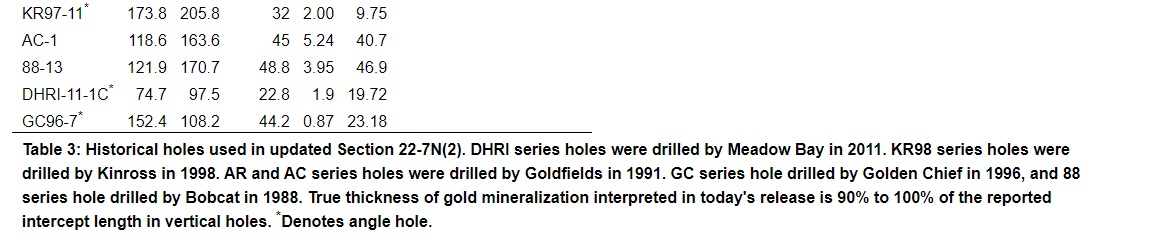 - One historical Kinross hole located in the vicinity of the westernmost boundary of the WAGZ drilled across the WAF2 and intercepted an impressive 32 m of 2.0 g/t Au in KR98-11, indicating the WAF2, which bounds the WAGZ to the west, is an important control for high-grade gold.