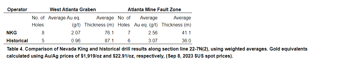 NEVADA KING INTERCEPTS 1.34 G/T AU OVER 67.1M & 1.14 G/T AU OVER 77.3M IN THE WEST ATLANTA GRABEN ZONE AT ATLANTA