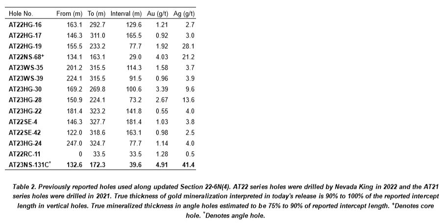 in AT23NS-131C (previously released Jan. 9, 2024), 1.41 g/t Au and 38.8 g/t Ag over 76.2 m