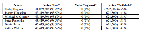 Each of the individuals listed in the attached table was elected as a director of the company as approved by a vote by ballot
