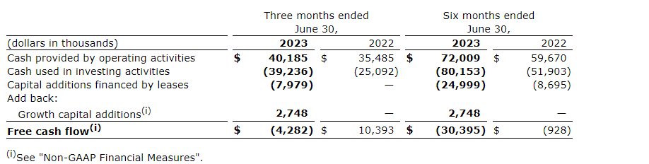 Cash-related interest expense for the quarter was $7.2-million at an average cost of debt of 6.9 per cent, compared with 5.2 per cent in Q2 2022, as rate increases posted by the Bank of Canada directly impact the company's credit facility and have a delayed impact on the rates for secured equipment-backed financing. Total interest expense was $7.5-million in the quarter, compared with $5.6-million in Q2 2022.