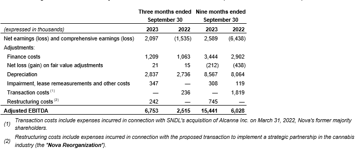 Nova has an uncommitted revolving credit facility with SNDL in an aggregate principal amount not to exceed $15.0-million. On Oct. 30, 2023, the term of the revolving credit facility was extended to Nov. 30, 2023.