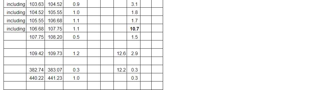 There are more assays pending from hole WS02. There were 30 centimetres of core loss after the very-high-grade gold section (43.9 g/t).