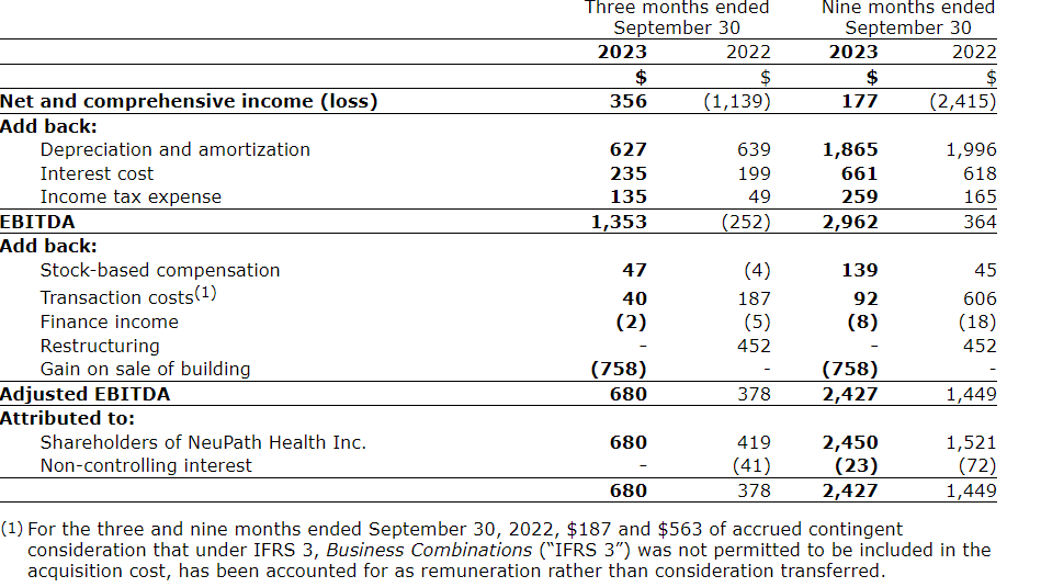 Neupath Health Inc. has released its financial and operating results for the three and nine months ended Sept. 30, 2023. All figures are in Canadian dollars, unless otherwise noted.