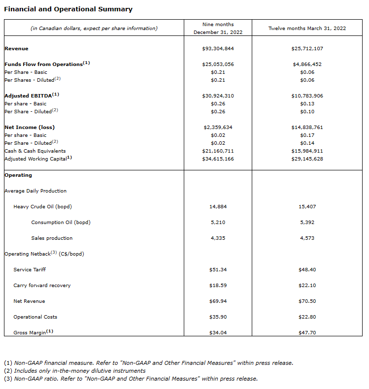 As previously disclosed, the Corporation has changed its year end from March 31 to December 31 effective this reporting period, accordingly a stub 9 month period ended December 31, 2022 is presented, compared with a 12 month period for the year ended March 31, 2022.