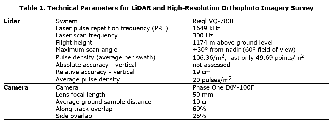 In the fall of 2023, Northstar commissioned KBM Resources Group to acquire propertywide lidar and high-resolution orthophoto imagery over the entire Rosegrove property. The survey successfully traced the regional Pacaud fault zone and splay structures (second-order structures) that potentially host gold or gold-telluride mineralization like the Miller copper-gold property. Several prominent north-south and east-northeast-trending structures were also identified in the southern and western areas of the property, where bedrock was not obscured by a floodplain. The lidar and orthophoto imagery survey was flown using a Piper Seneca twin-engine aircraft with the Riegl VQ780I lidar system. Due to a lack of ground control points, the absolute vertical accuracy was not assessed. Survey parameters are listed in the attached table.