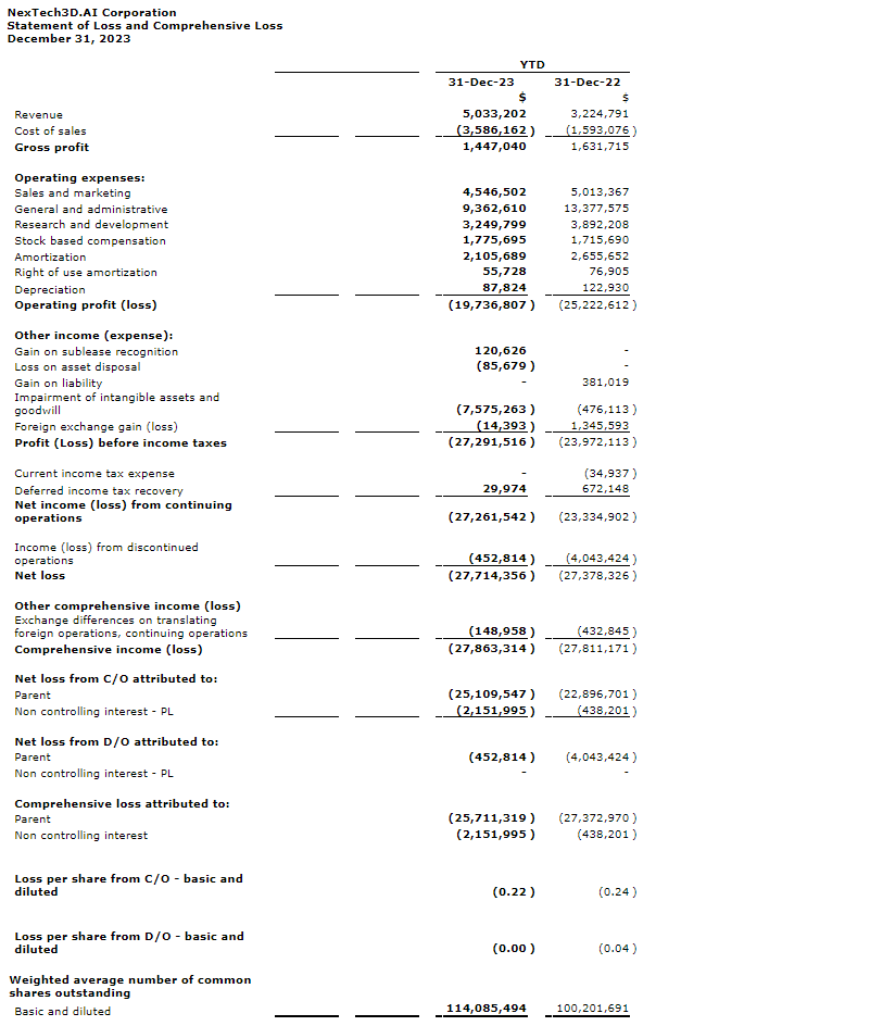 NEXTECH3D.AI REPORTS FISCAL YEAR 2023 AND FOURTH QUARTER 2023 AUDITED FINANCIAL RESULTS