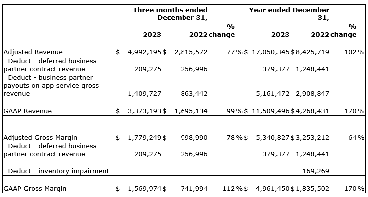 Two thousand twenty-three adjusted revenues were $17.05-million, and generally accepted accounting principle revenues were $11.51-million.