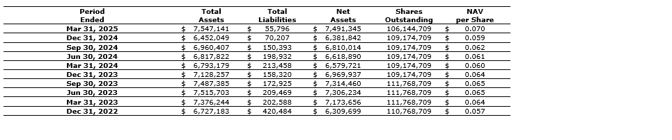 - The investment portfolio was valued at $7,518,305 for March 31, 2025. The investment portfolio value increased by 17.1 per cent and the NAV (net asset value) per share increased 20.7 per cent during Q1 (first quarter) 2025.