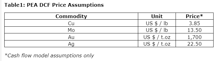 - The application of sulphide leaching on lower-grade chalcopyrite resources currently assigned to waste. Preliminary studies have commenced, and results are expected in Q4 2023. Capital expenditure/operating expenditure costs for an SX/EW (solvent extraction-electrowinning) facility are developed but are not considered in this PEA;