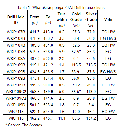 Oceanagold Corp. has released results to date from the 2023 resource conversion drill program at Wharekirauponga in New Zealand.