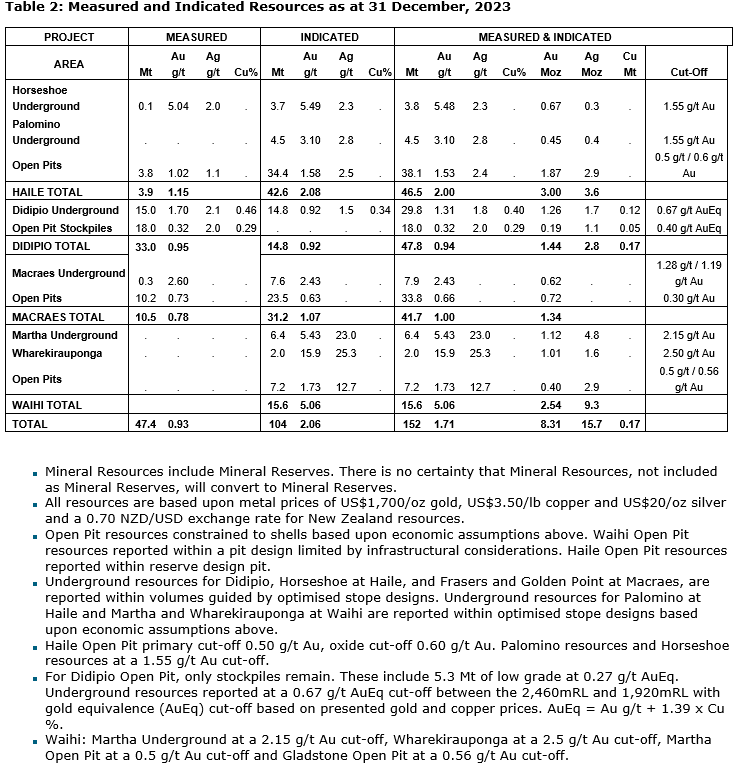 "Additionally, I am delighted by the increase in indicated resources at Wharekirauponga in New Zealand, which now exceeds one million ounces and with a grade increase to 15.9 [grams per tonne], demonstrating how truly exceptional this deposit is. Our updated reserves and resources estimates continue to provide a strong base for organic growth in the coming years, and I am excited about what our exploration programs will bring in 2024 and beyond."