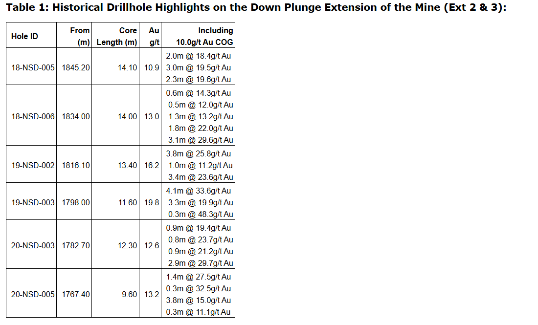 Directional drilling from surface to prove the open down-plunge extension of the mine trend -- the first surface program since 2020;