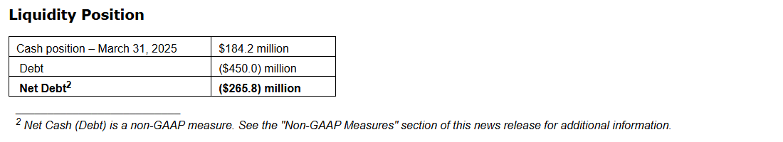 All amounts expressed in millions of United States dollars, as at March 31, 2025, and are unaudited.