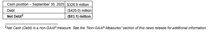 (All amounts expressed in millions of United States dollars, as at Sept. 30, 2025, and are unaudited.)