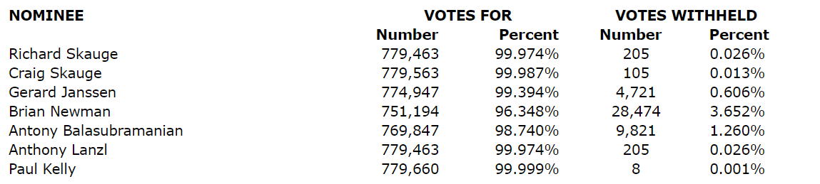 At Olympia Financial Group Inc.'s annual meeting of shareholders held on June 19, 2023, seven director nominees were elected as directors.