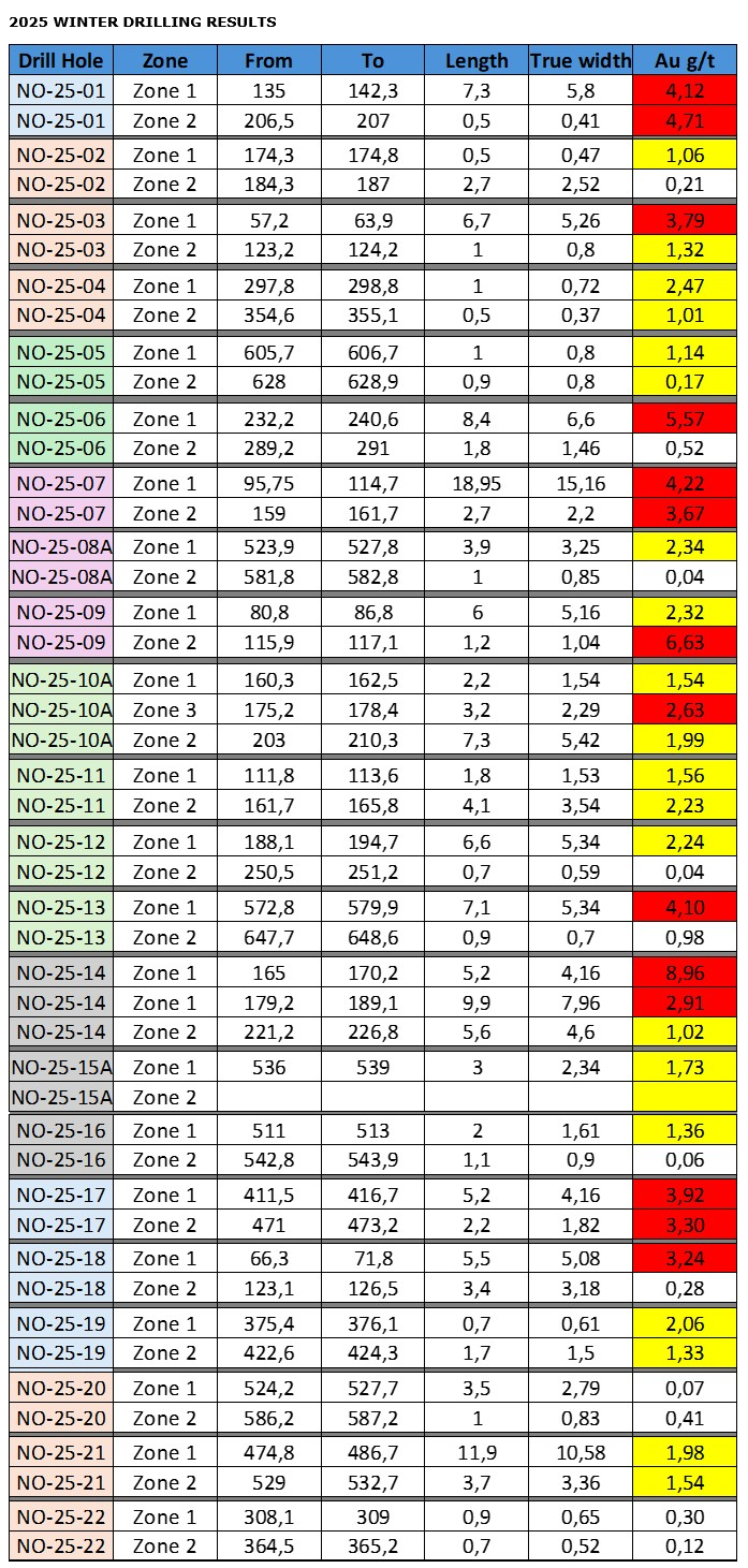 This new target area is located approximately three kilometres to the west of Zone 1 and corresponds to the eastern extension of significant gold mineralization being currently defined by drilling on the neighbouring property to the west (N2 project, Formation Metals, formerly Wallbridge). The N2 project already hosts a significant historical gold resource (press release dated Dec. 11, 2025) and a major drilling program is in progress.
