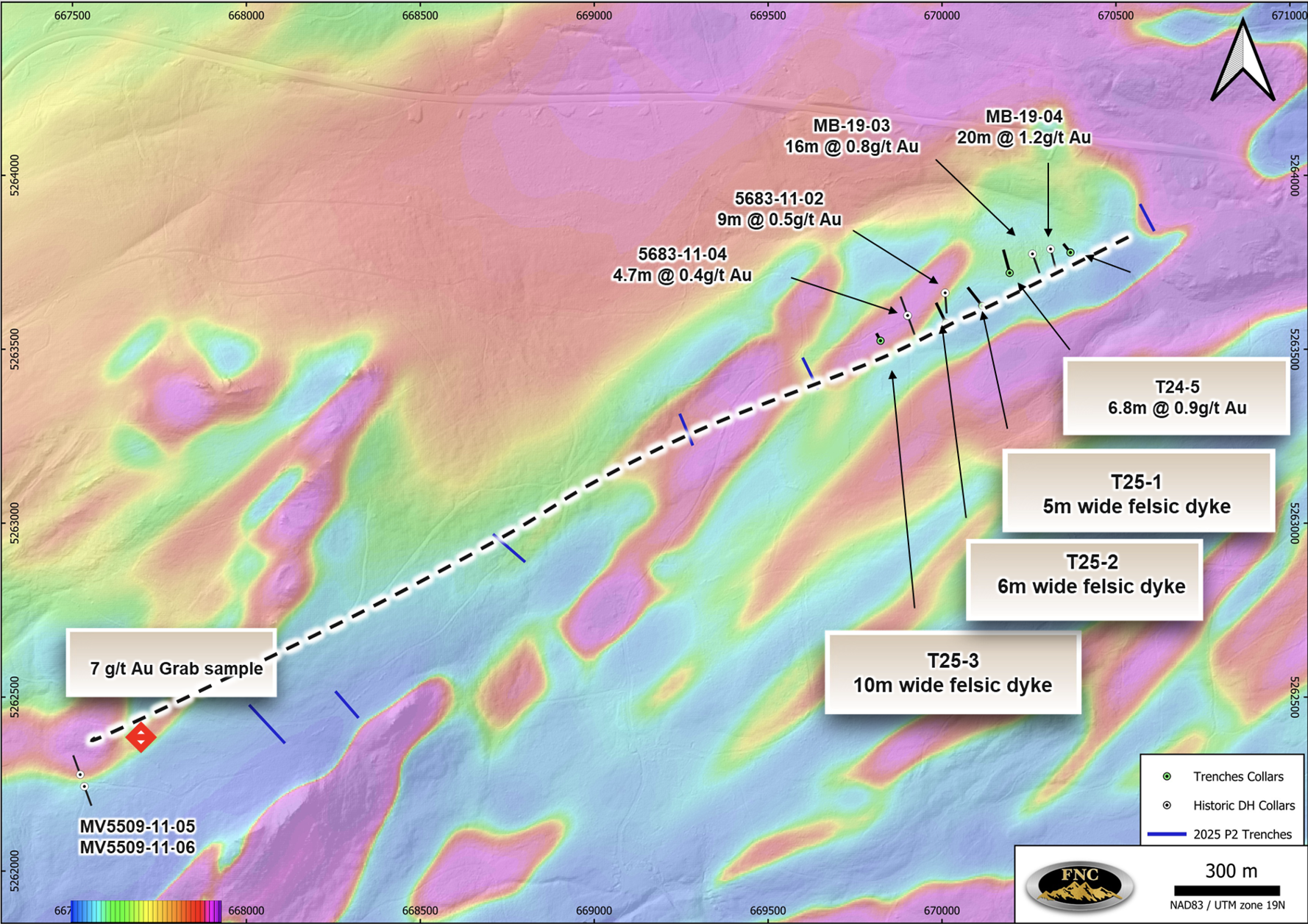 Based on findings from a successful 2025 field season , where systematic exploration that integrated previously airborne geophysics with surface geochemistry and overburden stripping and prospecting was conducted to evaluate known mineralized trends, a 2025 drill program (see Figure 1) was designed. This drill program produced three (3) holes with mineralized intercepts. Two of these holes, including MB25-02, intersected an altered structural zone, while a third intercepted mineralized quartz vein. MB25-02 returned assays of 1.12 g/t over 4.85 m (core length, as there is insufficient data to interpret true width at this point). The confirmation of mineralized intercepts validated exploration strategy. It clearly indicates upside potential in the upcoming drill program, expected to be launched in Spring of 2026.
