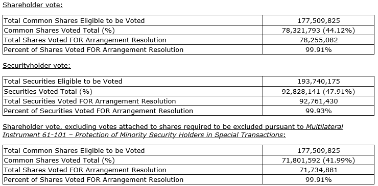 The company has a final order hearing scheduled for May 2, 2024, before the Supreme Court of British Columbia. The arrangement remains on track to close on or about the end of first half 2024, subject to approval by the Supreme Court of British Columbia and satisfaction of certain other closing conditions.