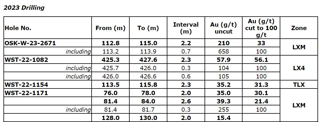Highlights from the 2023 drill program are presented herein and include 320 intercepts from 248 drill holes and one wedge. These highlights are intercepts with a metal factor (grams times metres) greater than 20. The intercepts are all located within the defined mineral resource estimate (MRE) blocks as described in Osisko's feasibility study on Windfall (see FS technical report, a copy of which is available on SEDAR+ under Osisko's issuer profile), and have targeted upgrading inferred mineral resources to measured or indicated mineral resources, or indicated minerals resources to measured mineral resources, as applicable.