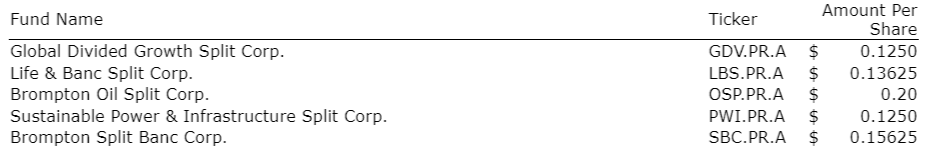 Brompton Funds ETFs will pay distributions on July 17, 2023, to Class A shareholders of record at the close of business on June 30, 2023, for each of the funds shown in the associated table.