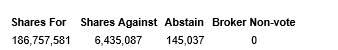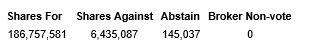 The results of the non-binding advisory vote for the compensation of the company's named executive officers are provided in the attached table.