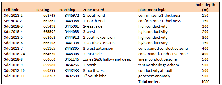 All holes will be placed near geophysical and geological interpreted structures to test the structural setting of the basin.