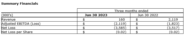 For further detailed information and analysis, please see the financial statements and management's discussion and analysis for the period ending June 30, 2023, as posted on SEDAR+ and the company's website.