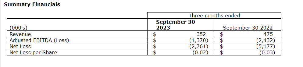 PHARMACIELO ANNOUNCES Q3 2023 FINANCIAL RESULTS