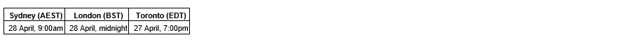 The webinar will be held at the date and time (according to the relevant time zone) indicated in the attached table.