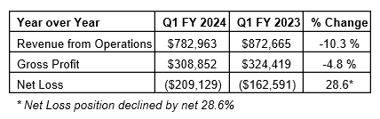 PUDO INC. REPORTS FY 2024 FIRST QUARTER END RESULTS