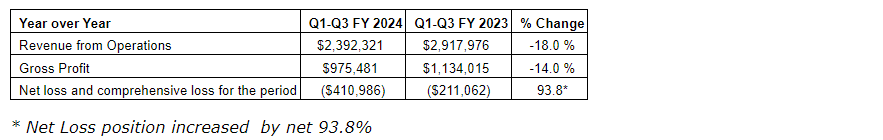 PUDO INC. REPORTS FY 2024 THIRD QUARTER END RESULTS