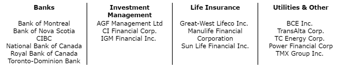 The company invests in a portfolio of high-yielding Canadian companies as shown.