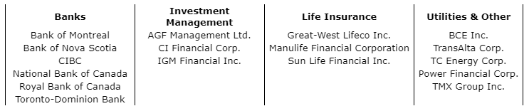 The company invests in a portfolio of high-yielding Canadian companies as shown in the attached table.