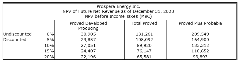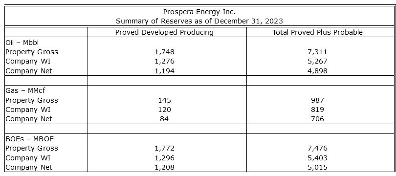 The 2023 Reserves Report demonstrates substantial upside for Prospera Energy, with highlights as follows: