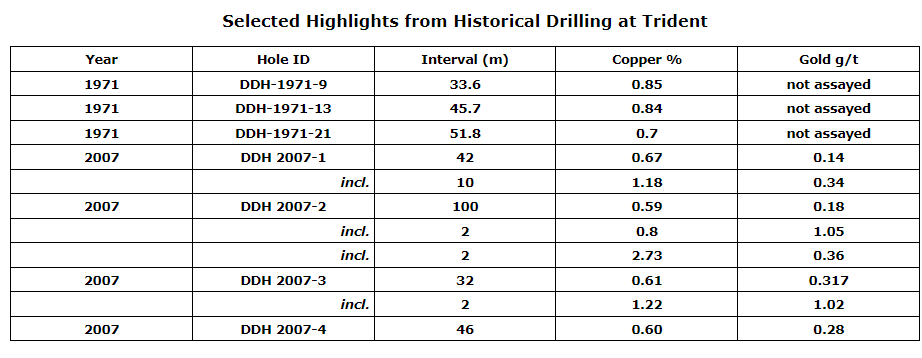 Located approximately 50 kilometre to the southeast of Northwest Copper's Kwanika deposit and 50 km to the northwest of Centerra Gold's Mt. Milligan mine, the Trident property covers 6,618 hectares and is accessible by vehicle using well-established logging roads.