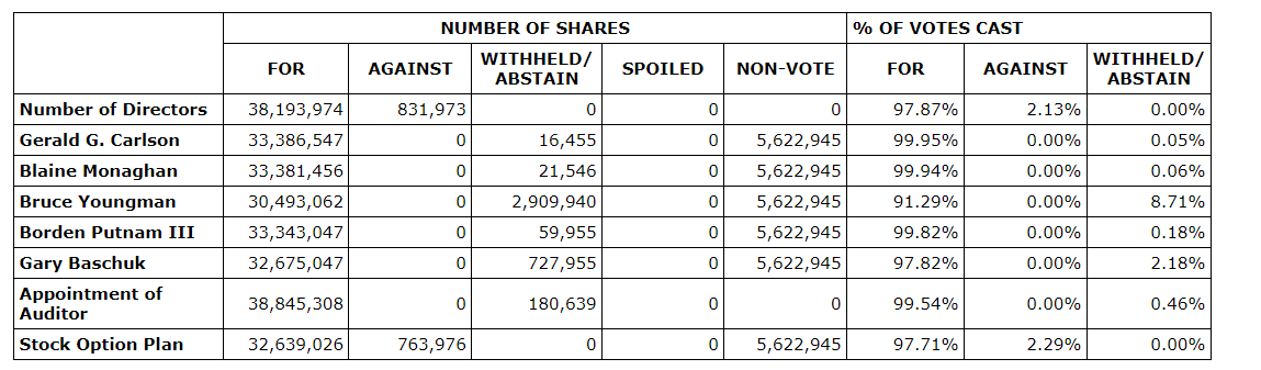 A total of 39,025,947 shares, or 36.13 per cent of the 108,018,790 eligible shares, were voted.